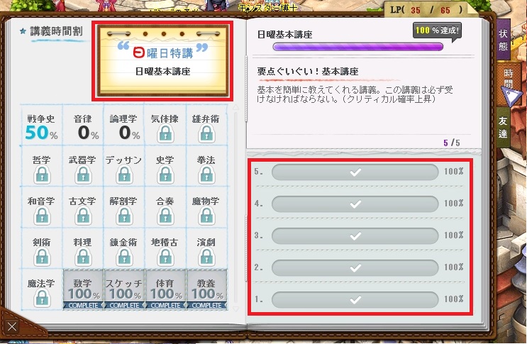 強さ・知性・魅力の3ステータスが各講義の種類によって上昇していく ステータスが1ゲージたまるとレベルアップしてLPが全回復する あとはわかるな?